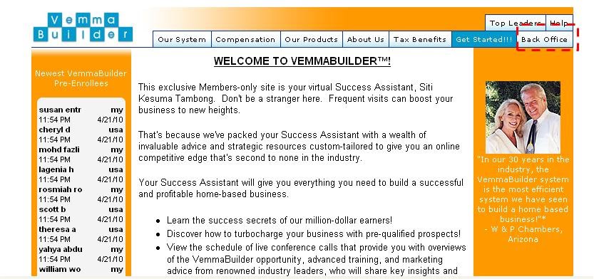 i) Log-in ke laman web http://www.vemmabuilder.com dengan menggunakan ID & password yang dihantar melalui anda tadi.